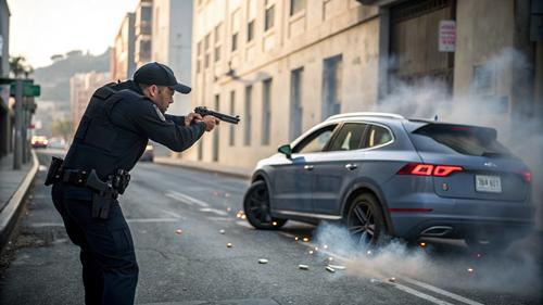 Полицейские в свою очередь неоднократно выстрелили в колеса беглеца, пока полностью не обездвижили транспортное средство. Сообщается, что наблюдать простреленную машину можно на местной штрафстоянке, а водителя-нарушителя в ближайшее время в Сакском городском суде.