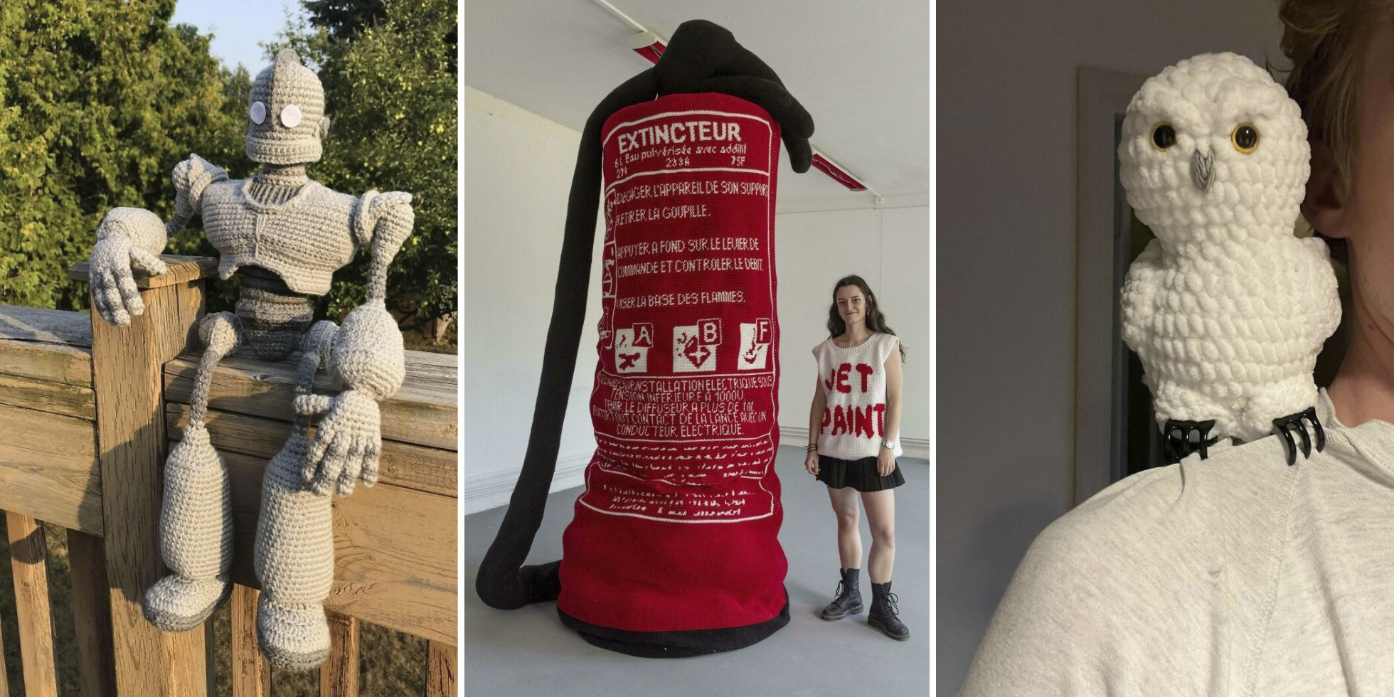Потешный фрукт, гигантский огнетушитель и другие удивительные творения своими руками. Вязать крючком — занятие не из лёгких: без усидчивости здесь не обойтись. А если подключить ещё и фантазию, то можно создать настоящий шедевр. Пользователи Сети поделились своими вязаными творениями, которые можно смело использовать в качестве подарка, а в некоторых случаях — отправлять на выставку. Самые неординарные экземпляры — ниже. 1. Для начала — вязаный аквариум (без вязаной воды). Фото: Massive-Designer4676 / Reddit 2. Этот зонт вряд ли защитит от дождя, но выглядит потрясающе. Фото: Rachel1578 / Reddit 3. Малыш отдыхает в «поле» маргариток. Фото: PanOctopus / Reddit 4. Лучшая книжка-раскладушка для ребёнка. Фото: skaletons / Reddit 5. Наверняка когда спишь под таким одеялом, снится только море. Фото: CallilyCodes / Reddit 6. Самый милый фрукт, который вы сегодня увидите. Фото: kyphose / Reddit 7. Этот «гигант» не такой стальной, как в оригинальном мультфильме, но такой же очаровательный. Фото: CeeThuhn / Reddit 8. Цветы, которые никогда не завянут. Фото: Top-Fennel-9151 / Reddit 9. Прелестные огурчики-детёныши. Фото: ashleighbuck / Reddit 10. Специально для фанатов «Гарри Поттера» — сова с заколками в качестве когтей. Фото: smollov / Reddit 11. Миниатюрная сумочка для миниатюрной бабушки. Фото: linwe_luinwe / Reddit 12. Мэгги Симпсон такому позавидовала бы. Фото: hellerbu / Reddit 13. Самое оригинальное украшение на кофр запасного колеса. Фото: Material-Sort-2772 / Reddit 14. Даже подумать страшно, сколько времени ушло на создание этого произведения искусства. Фото: irisdement-ed / Reddit 15. Завтрак подан! Фото: CrochetCafe / Reddit 16. Семейство милых белок-летяг. Фото: thatprettykitty / Reddit 17. И про Хэллоуин не забываем — он уже близко. Фото: CharliArty / Reddit 18. Лимонное дерево — прекрасное украшение для любого сада или даже дома. Фото: madlenovic / Reddit 19. Таких огнетушителей вы ещё не видели. Фото: entrecrochet / Reddit 20. Напоследок — вязаная нервная клетка. Фото: TrashGirl2929 / Reddit Какой вариант понравился вам больше всего? Пишите в комментариях. Играли с дизайном и проиграли: 13 фото очень сомнительных решенийПользователи Сети показали своих необычайно огромных питомцев: 17 фото