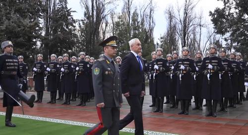 Ранее в военном ведомстве Узбекистана с участием роты Почётного караула состоялась церемония официальной встречи российской делегации во главе с министром обороны России Андреем Белоусовым.